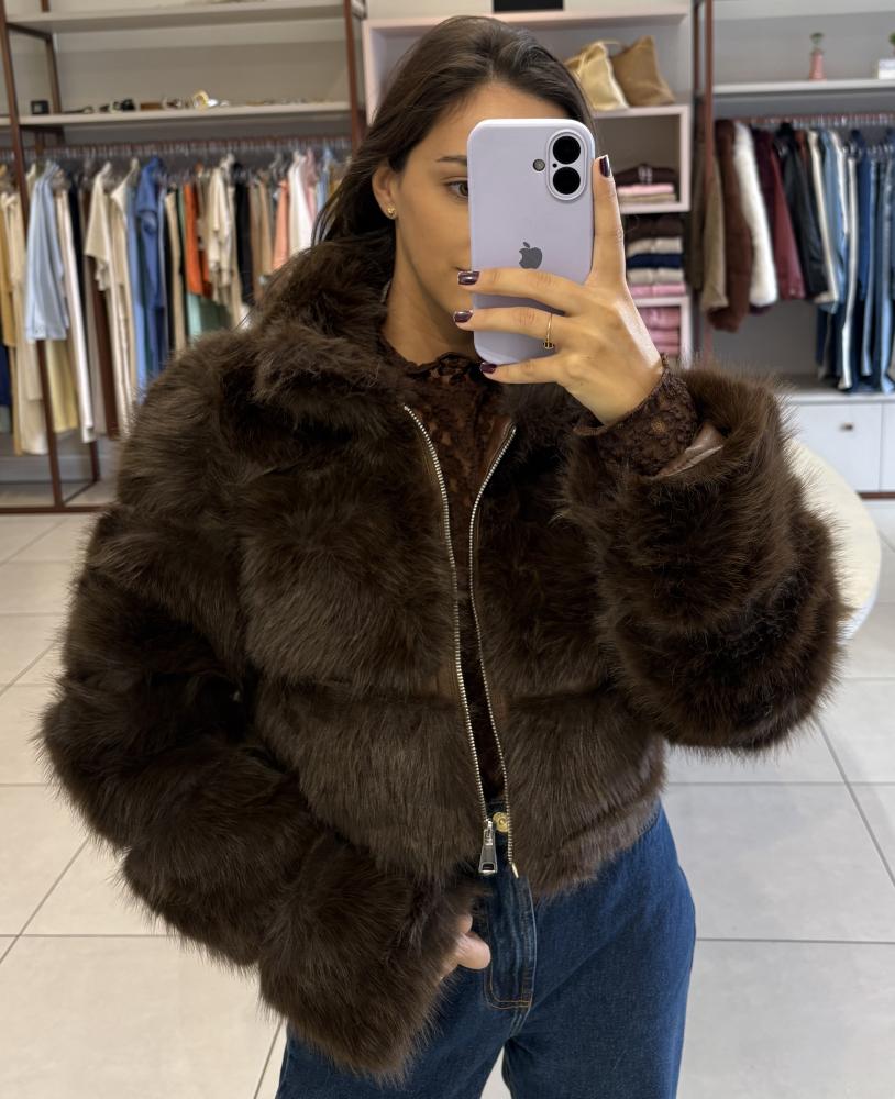 Casaco PU com pelo